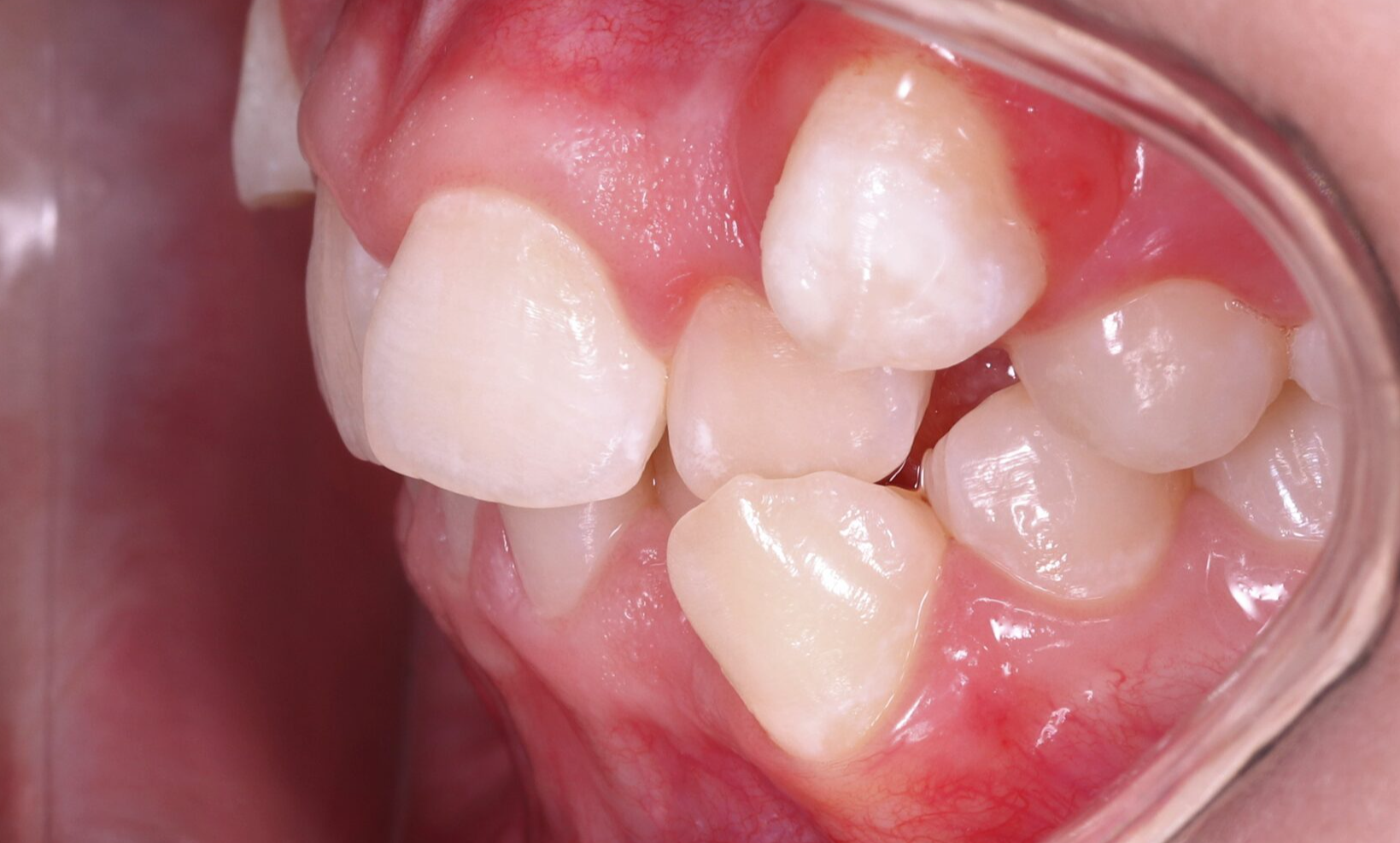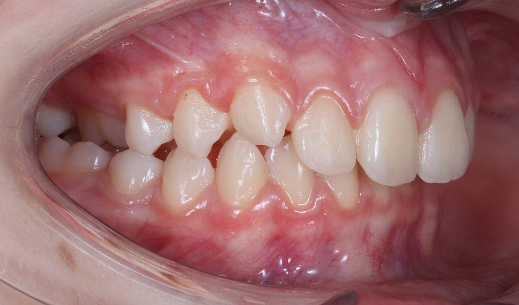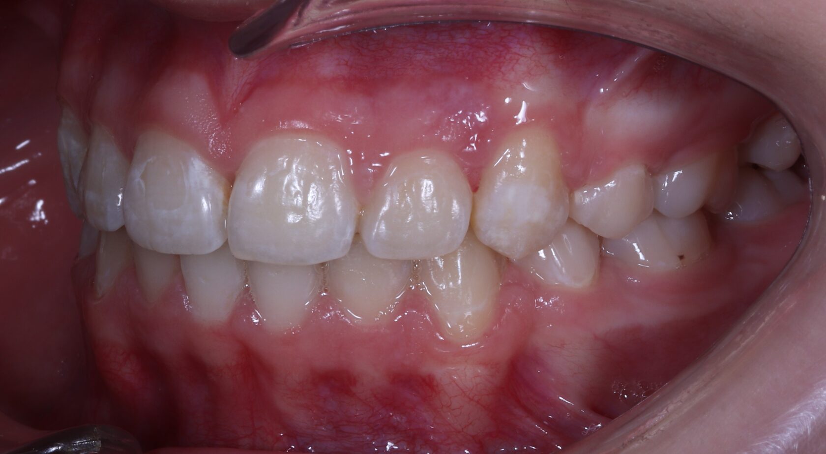 Исходные данные: дефицит места для левого нижнего и верхних клыков, резцовая скученность