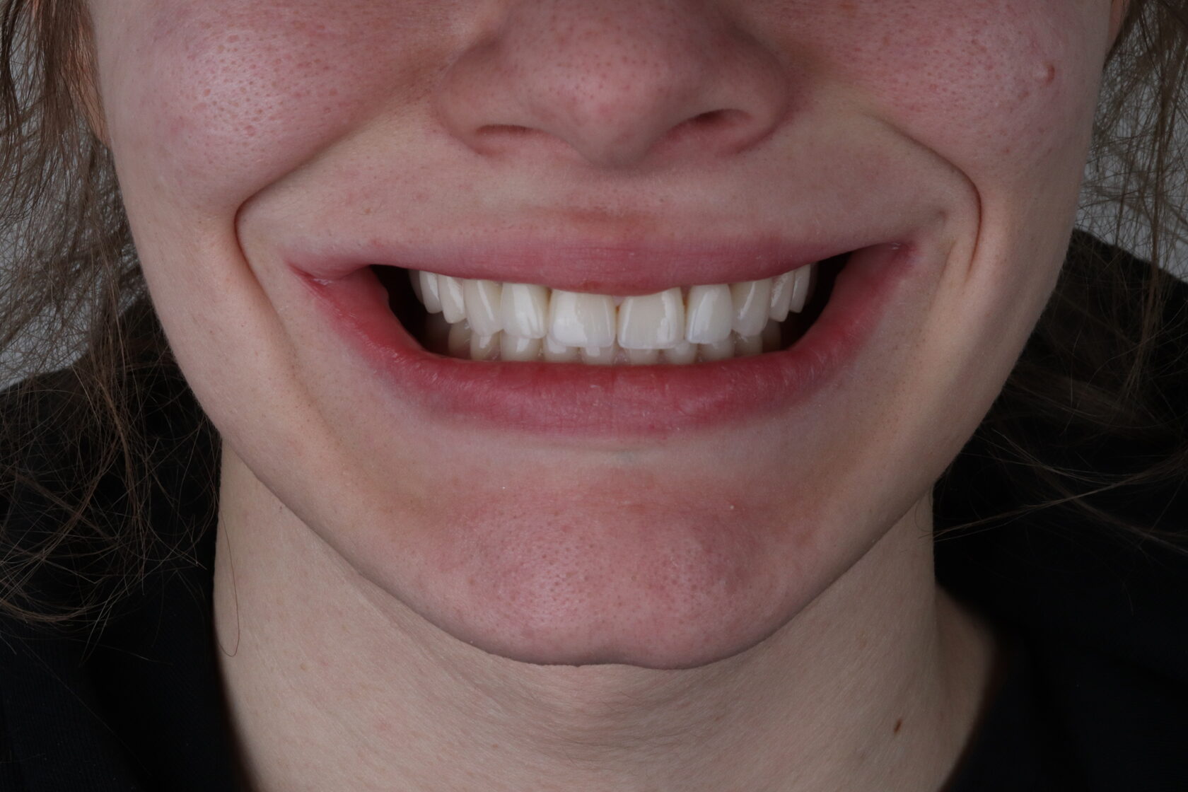 Решение: проведено комплексное лечение, включающее ношение брекет-системы, челюстно-лицевую операцию и