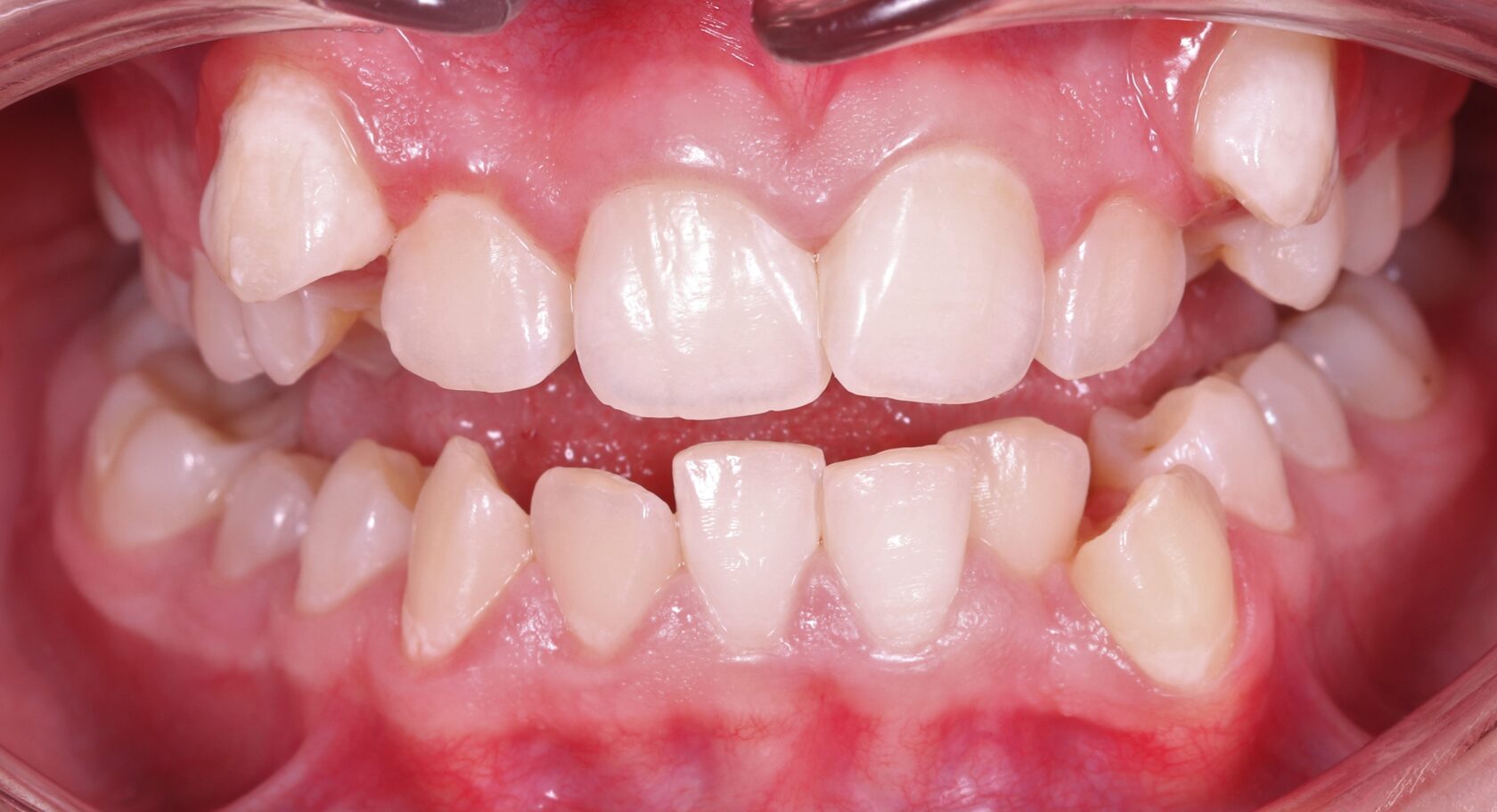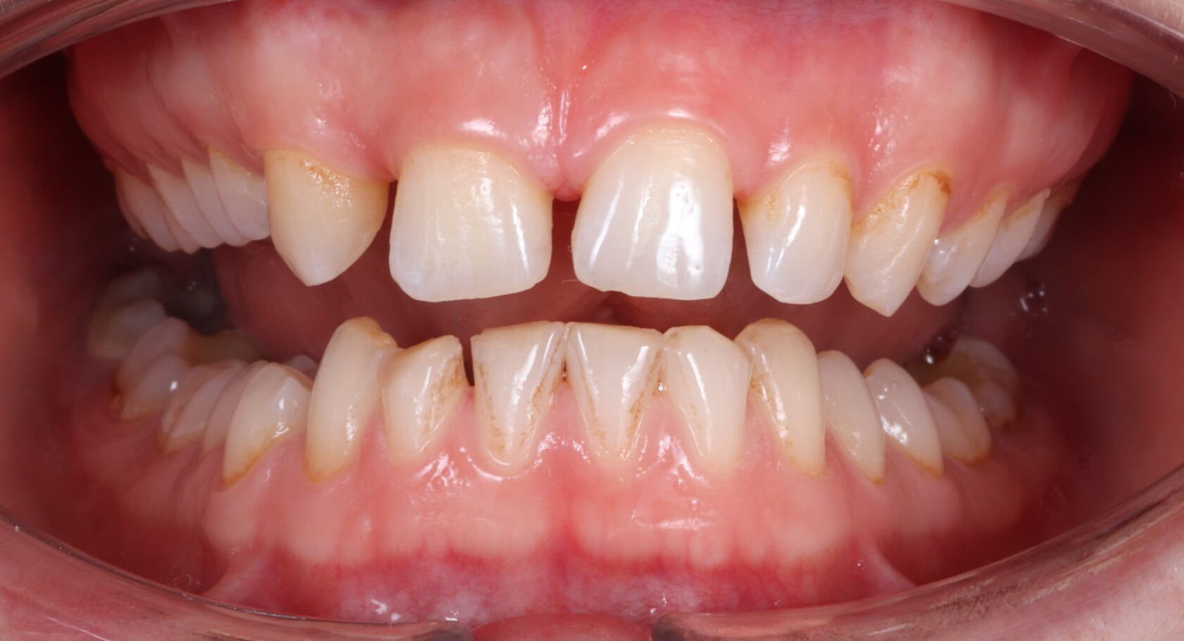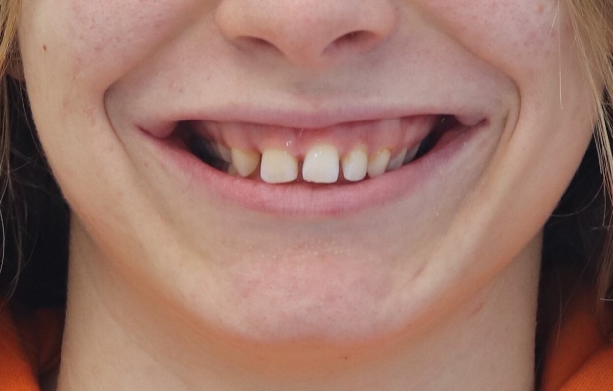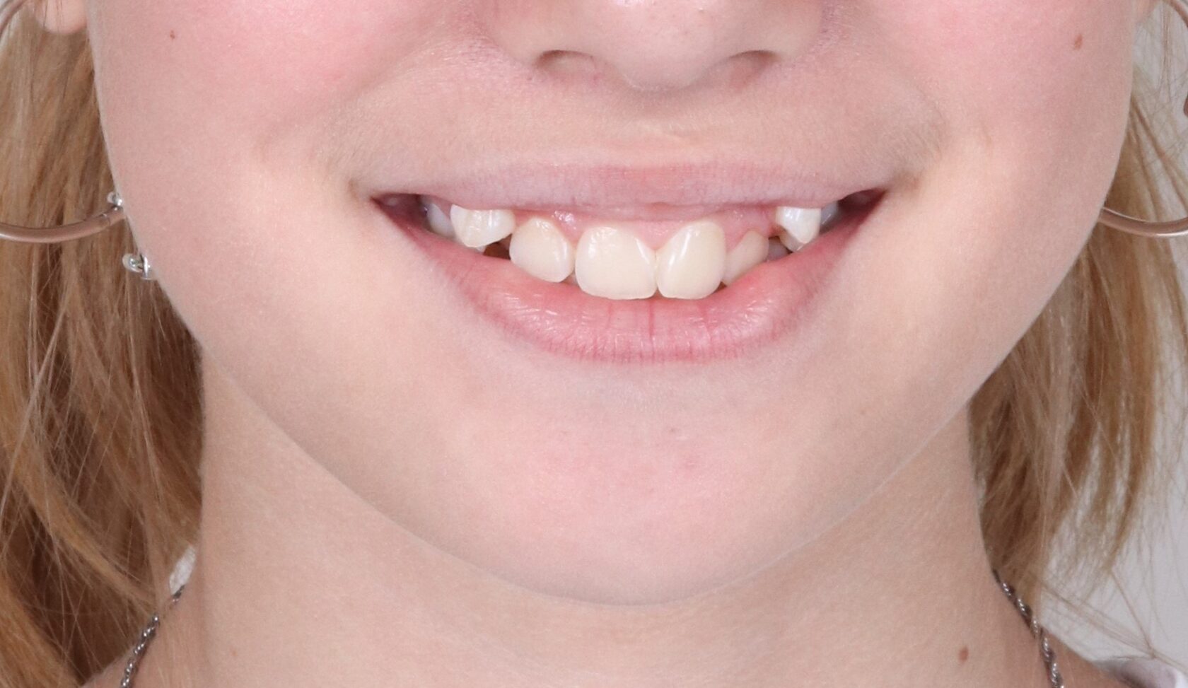 отсутствующего зуба , а также расширением узкого бокового верхнего резца с помощью